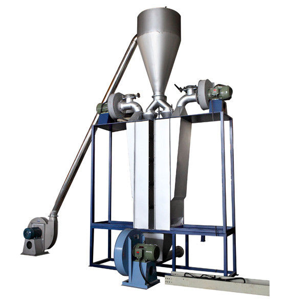 El nuevo diseño del clasificador de aire en zigzag para el lavado de botellas de PET o PET y la separación de etiquetas de copos de plástico utiliza el principio de separación por flujo de aire.divide un flujo de material mixto en dos flujos homogéneosEste flujo de aire alternado crea un entorno dinámico donde las partículas con diferentes densidades, tamaños y formas se separan en función de sus propiedades aerodinámicas.Seleccionar el encendedor de los materiales más pesados después de la trituraciónA medida que el flujo de material mezclado entra en el clasificador, este sistema de extracción de válvula de aire hacia arriba asegura que el encendedor más ligero,Los materiales micronizados son soplados hacia arriba y salen de la cámara de clasificación por separado.Los materiales más pesados, por el contrario, salen en la parte inferior, asegurando una separación precisa y eficiente.Separador de etiquetas o separador Airlower, especialmente útil en situaciones en las que es necesario separar partículas finas y etiquetas de un flujo mixto de materiales para su posterior procesamiento o eliminación.